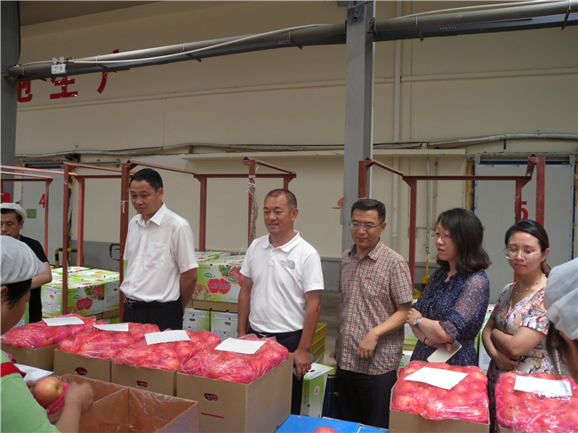2018年7月30日,中國農(nóng)業(yè)科學(xué)院農(nóng)業(yè)質(zhì)量標(biāo)準(zhǔn)與檢測技術(shù)研究所課題負(fù)責(zé)人錢永忠所長、中國綠色食品發(fā)展中心張憲副處長、煙臺(tái)市主管部門負(fù)責(zé)人等,在棲霞市農(nóng)業(yè)局領(lǐng)導(dǎo)的陪同下,來?xiàng)嫉仑S食品有限公司開展《綠色食品品質(zhì)、營業(yè)功能評價(jià)標(biāo)準(zhǔn)課題》的調(diào)研,公司董事長潘德輝陪同觀摩匯報(bào)。