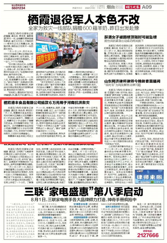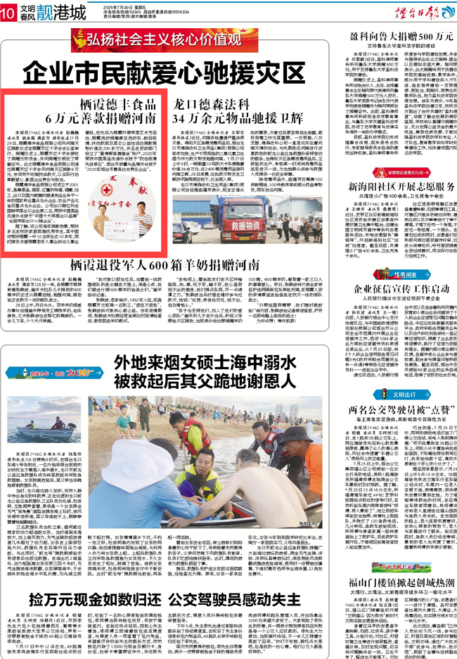 捐贈(zèng)儀式上,棲霞市紅十字會(huì)接收了捐贈(zèng)方的資金,并向捐贈(zèng)方頒發(fā)了榮譽(yù)證書(shū)。此次棲霞德豐食品有限公司通過(guò)棲霞市紅十字會(huì)向河南災(zāi)區(qū)捐款6萬(wàn)元,專項(xiàng)用于河南抗洪救災(zāi),以實(shí)際行動(dòng)奉獻(xiàn)愛(ài)心、彰顯企業(yè)責(zé)任與擔(dān)當(dāng)。