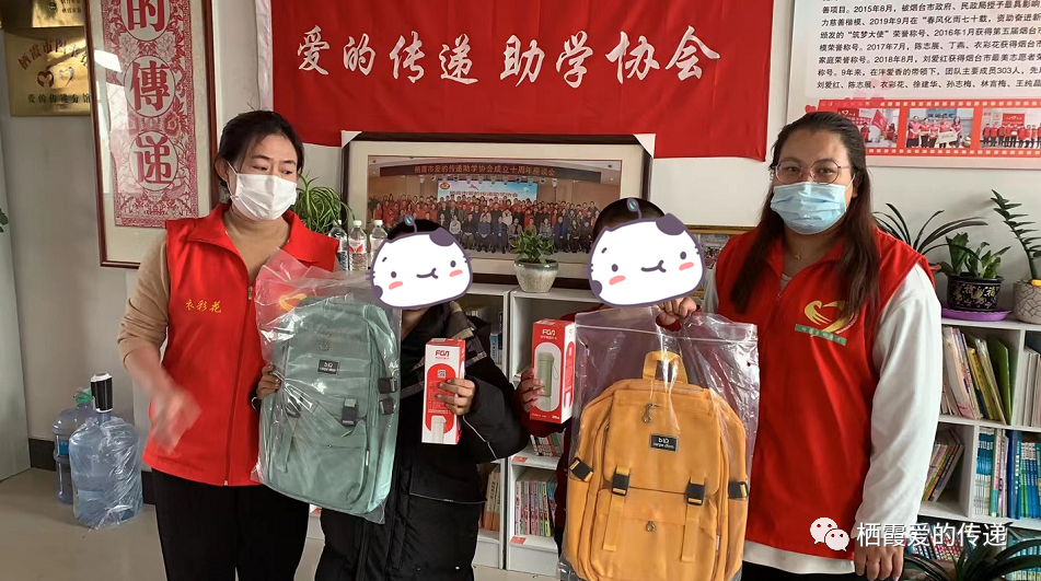 資助款、書包、水杯以及口罩,孩子們都拿到了