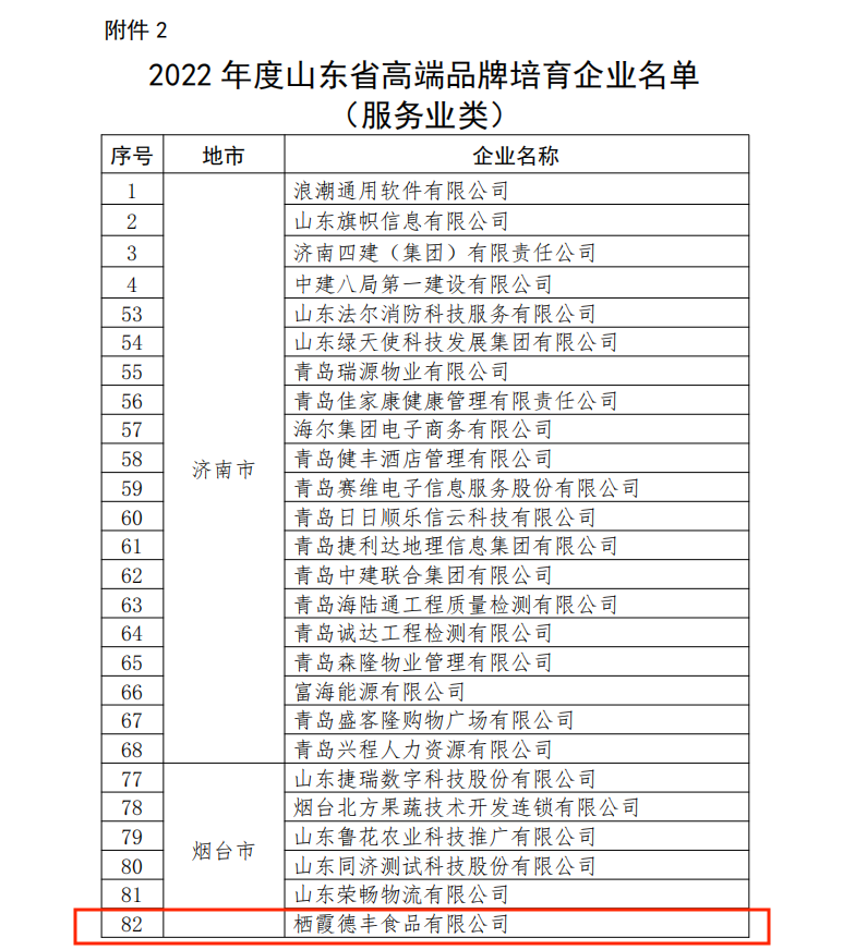 德豐公司入選2022年度山東省高端品牌培育企業(yè)