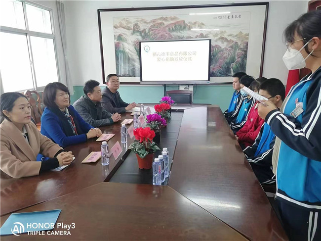 大小新聞客戶端3月22日訊(YMG全媒體記者 趙巍巍 通訊員 王仁華 攝影報(bào)道)3月21日上午,棲霞德豐食品有限公司捐資助學(xué)儀式在棲霞一中舉行。棲霞市慈善總會(huì)辦公室主任胡向紅、棲霞德豐食品有限公司辦公室主任陳福春和棲霞一中副校長(zhǎng)林海,共同為棲霞一中10名品學(xué)兼優(yōu)的學(xué)生發(fā)放愛(ài)心助學(xué)金1.5萬(wàn)元。