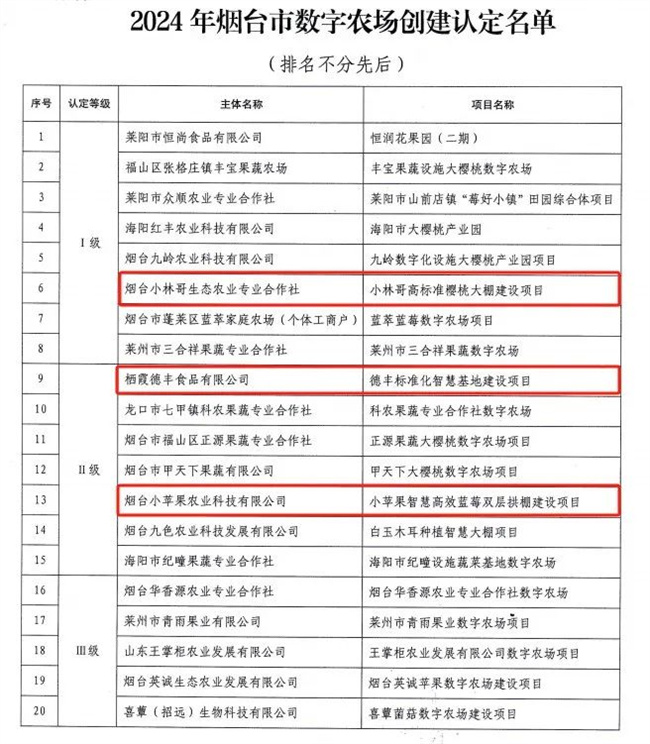 榜上有名!棲霞這三家農(nóng)業(yè)主體入選2024年煙臺市數(shù)字農(nóng)場
